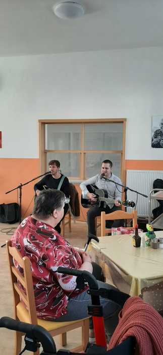 odpoledne nás navštívili zpěváci Duo Nykl, kteří si s našimi klienty pořádně zazpívali za doprovodu kytary. Zazněly písně lidové i písně moderní. Všichni si vystoupení moc užili a už teď se těšíme na další. 15.3.2022 přijel klientům zahrát a zazpívat hudebník p. Bláha. Klienti si vždy poslechnou krásné písně a společně si s muzikantem zazpívají. 28.3.2022 jsme s klienty nezaháleli a pustili se do sázení jarních květin a drobného úklidu po zimě. Ostatní klienti měli možnost si zahrát napínavou hru Bingo. 31.3.2022