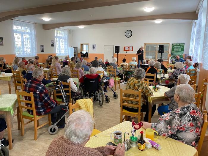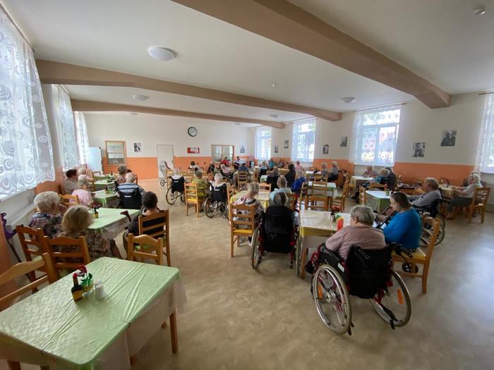 Dne 6.8. se u nás v Domově konalo naše oblíbené grilování. Klienti si poslechli písně jejich mládí a k tomu si dali výbornou klobásu s pivečkem. 9.8.2021 nám přijel zahrát a zazpívat hudebník p. A. Weiss. 11.8.2021 nás potěšila návštěva klaunů - Chance 4 children program dr. Klaun, kteří opět vykouzlili všem klientům úsměv na tváři. 16.8.2021 jsme prožili pohodové odpoledne při poslechu písní hudební kapely "Duo Nykl". Všichni jsme si toto krásné vystoupení užili. 20.8.2021 bylo ve znamení grilování, ke kterému jsme si poslechli hudbu p. Bláhy. 24.8.2021 se konala oslava narozenin klientů narozených v srpnu. 26.8.2021 nás poctil svou návštěvou zpěvák Daniel Hůlka. Vystoupení se konalo, jako tradičně v jídelně, kde zazněly muzikálové melodie a známé české písně. Klienti byli velmi potěšeni a odnesli si nezapomenutelný zážitek. 31.8.2021 nás navštívil náš canisterapeutický tým pod vedením p. M. Merklové.