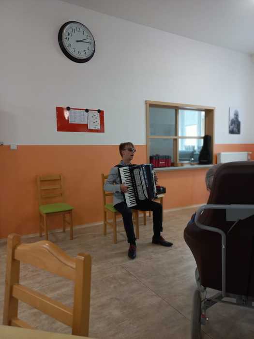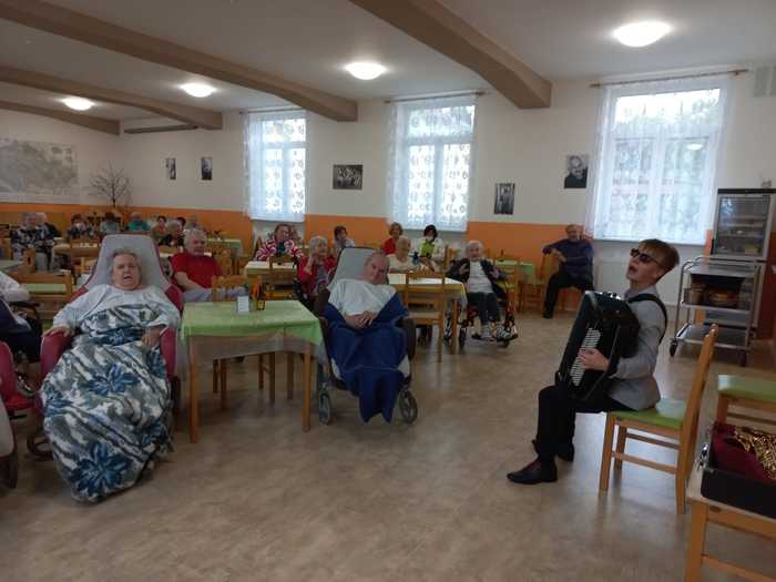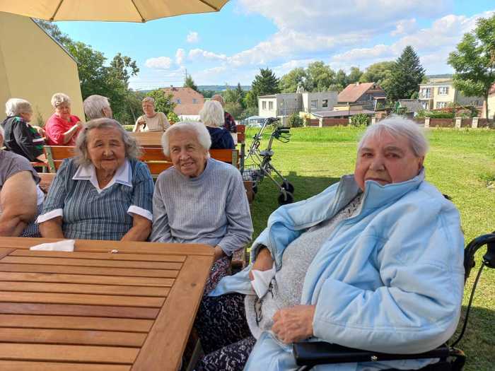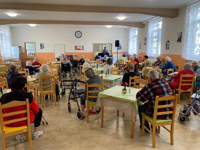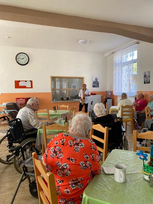 Dne 3.9.2021 proběhlo poslední venkovní grilování. Počasí nám opravdu přálo, a tak jsme neváhali a využili toho. Venkovní "grilovačka" má vždy tu správnou a příjemnou atmosféru. Klobáska, pivečko a hezká živá hudba byly potěšením pro všechny naše klienty. 8.9.2021 jsme se při krásném slunečném dni vydali na seniorské hry do Smečna. Naši klienti si tak mohli vyzkoušet mnoho dovedností a uplatnit své vědomosti. Jelikož byli velmi šikovní, vyhráli jsme krásné 3. místo. Celý bohatý program provázela skvělá hudba a příjemná atmosféra. Na památku si každý zúčastněný odnesl milý dáreček. Byl to super den plný zážitků. 9.9.2021 nás navštívil hudebník p. Weiss a zahrál nám krásné melodie. 10.9.2021 se konala zajímavá přednáška o Madeiře. Všem se to moc líbilo. 15.9.2021 se konala Olympiáda pro seniory. Zúčastnilo se celkem 10 hracích týmů. Letošní program byl velice nabitý a pestrý. Objevilo se spousty nových disciplín a soutěží. Po vyčerpávajícím dopoledni nesmělo chybět dobré jídlo. Na závěr se konalo vyhlášení vítězů. Klienti na prvním, druhém a třetím místě vyhráli výborný dort. Ostatní, všichni zúčastnění, dostali dárečky za účast a velké nasazení do soutěží. Náš Domov se umístil na prvním místě a jsme na naše klienty náležitě pyšní. Olympiáda byla velice vydařená a my se těšíme na další rok. 21.9.2021 nám přijelo zahrát a zazpívat zpěvácké duo "Skymusic". 24.9.2021 nás přijel navštívit hudebník Ondřej Krejča, který nám nádherně zazpíval a zahrál na harmoniku, ukulele a saxofon.